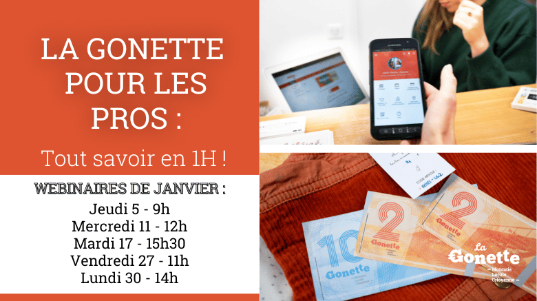 Nous animons toutes les semaines un webinaire d’1h qui s’adresse aux commerçants, professions libérales, associations, producteurs, collectivités locales, fondations, artisans et TPE/PME, qui considèrent l’argent comme un outil au service de l’Humain et qui veulent favoriser des échanges dans la proximité et dans l’économie réelle.