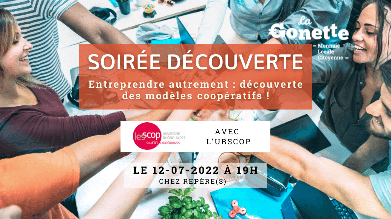 La Gonette vous convie à Repère(s) (2 rue Camille Jordan, 69001 Lyon), mardi 12 juillet à 19h pour une soirée à la découverte de l’entrepreneuriat et des modèles coopératifs, avec l’URSCOP, l’union régionale des SCOP.