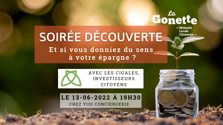 La Gonette vous convie à Yiqi Conciergerie (83 rue de Marseille, 69007), lundi 13 juin à 19h30 pour une soirée autour de la finance solidaire, avec les Cigales, des clubs d’investisseurs citoyens