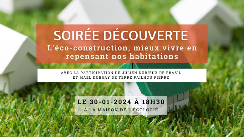La Gonette vous convie le mardi 30 janvier 2024 à 18h30 pour une soirée découverte sur le thème de l’éco-construction à la Maison de l’Écologie (4 rue Bodin, 69001 Lyon) animé par Julien Duireux et Maël Dubray ! De nombreux sujets seront abordés comme la sobriété, les matériaux bio-sourcés, le réemploi…