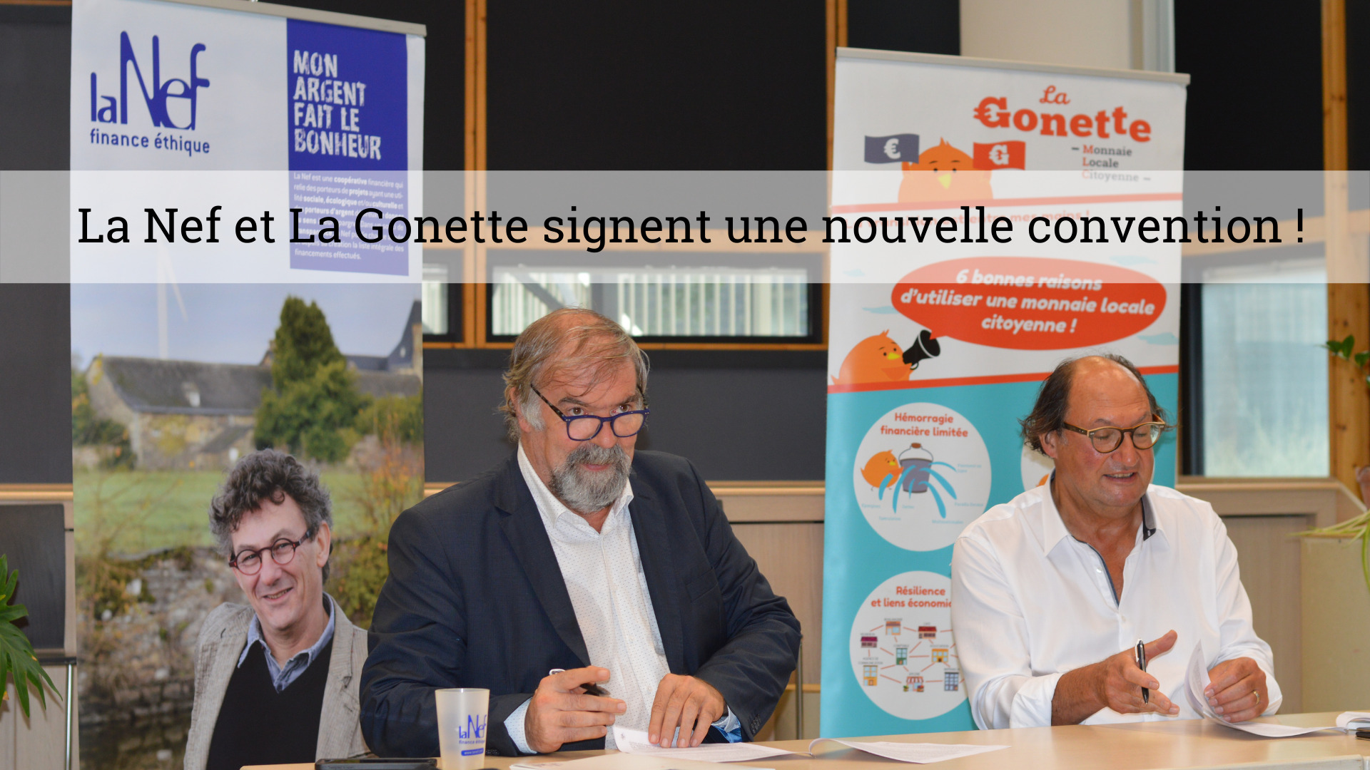 Jean-Vincent Jéhanno, CoPrésident de La Gonette “Ce sont aujourd’hui 188 010 Gonettes numériques que le fonds dédié placé sur un livret Nef garanti : vous comprendrez que nous tenions énormément à cette nouvelle convention qui sécurise le cantonnement de nos titres de paiement en circulation, car la marche vers le million en circulation est désormais lancée, et nous comptons sur vous tous pour réussir !” Bernard Horenbeek, Président du Directoire de la Nef “Les monnaies locales et la Nef portent le projet commun de transformer l’utilisation de l’argent pour le mettre au service de la transition, sur les territoires. C’est donc une évidence pour la Nef de travailler main dans main avec les monnaies locales, en commençant par la Gonette, sur le territoire où notre siège est implanté et auquel nous sommes attachés. Et d’accompagner aujourd’hui son développement via la monnaie numérique. Un partenariat de sens et d’avenir !”