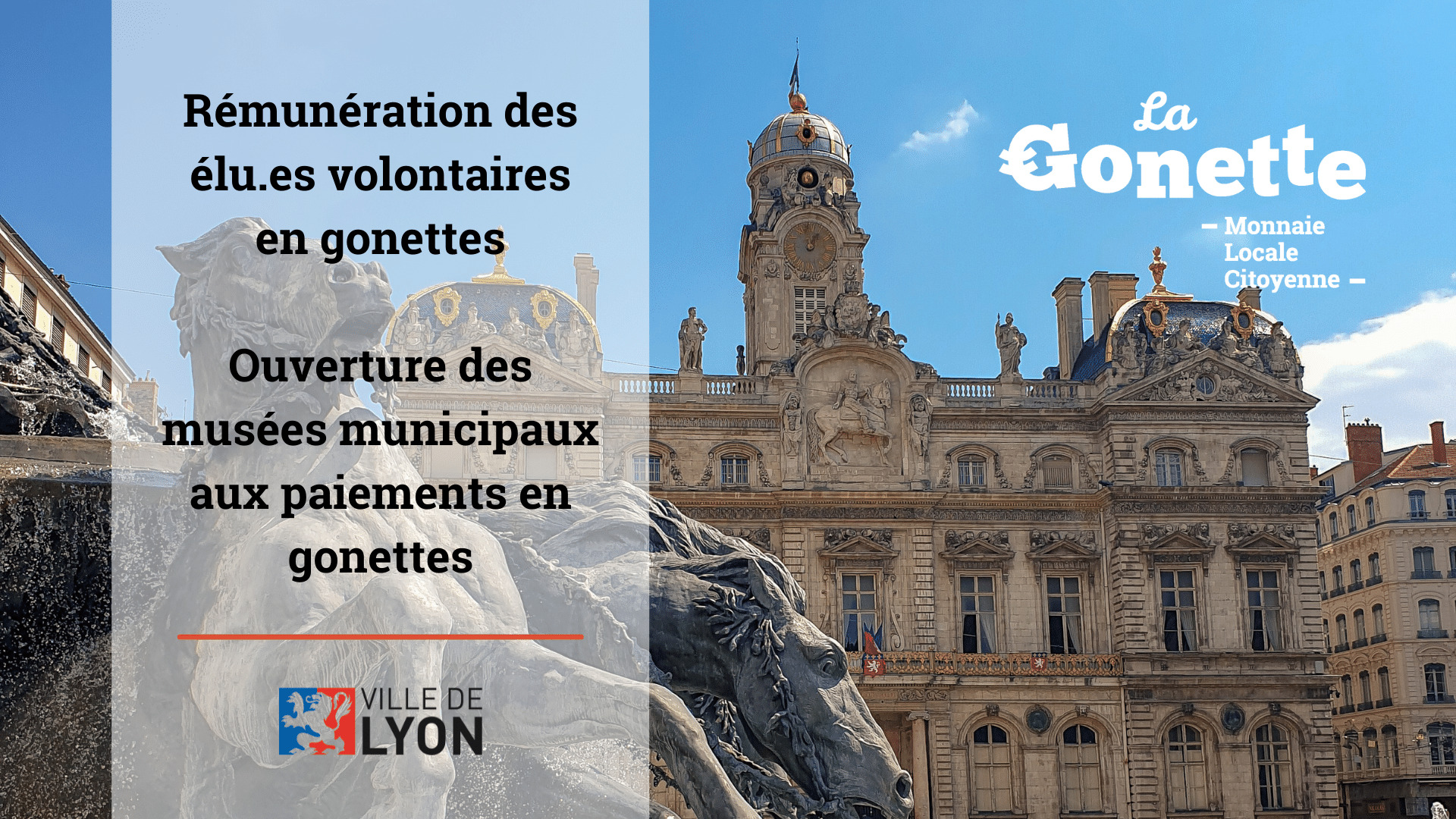 - La possibilité pour les élu.es volontaires de la Ville de Lyon de percevoir une partie de leurs indemnités en gonettes. La Ville de Lyon rejoint ainsi la décision similaire prise par la Métropole de Lyon depuis l’été 2021.